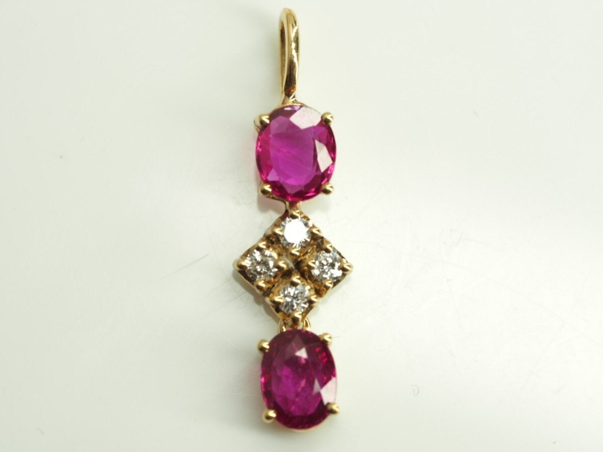 - ●素敵な色合い極上良質天然ルビーダイヤモンドペンダントトップ K18YG R9.93ct D0.11ct