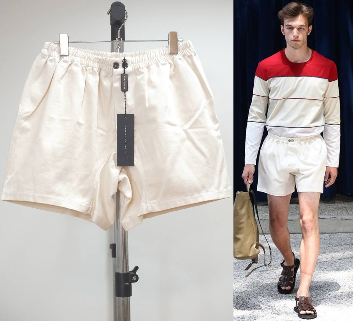 - 未使用品 ANDREA INCONTRI アンドレアインコントリ 13SSネップ地ショートパンツM Italy製