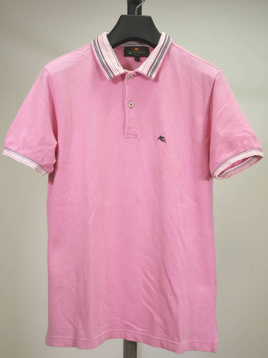 - ETRO エトロ ロゴ刺繍ポロシャツSピンク Italy製