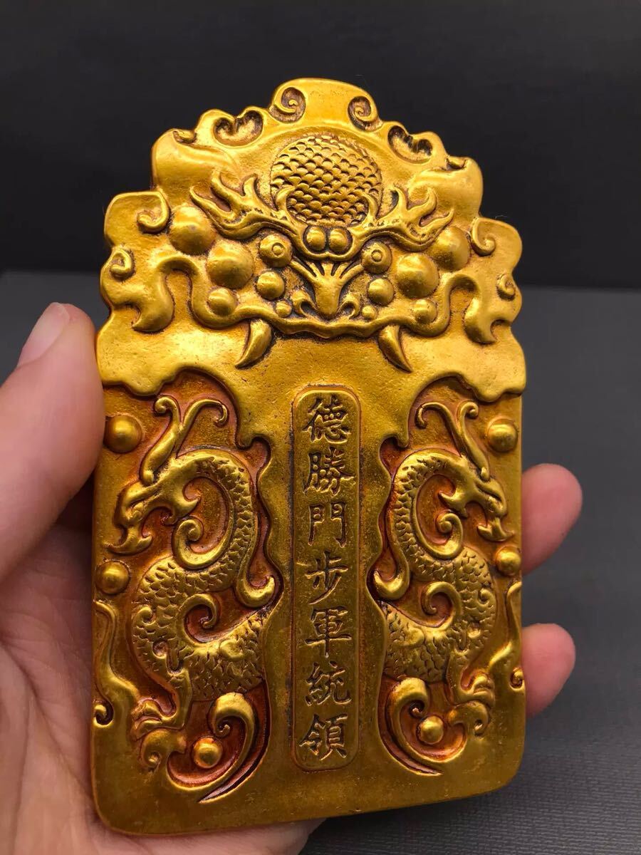 - 中国 大清 德勝門軍統領金令牌 金錠 金条 金塊 古代朝廷務軍令 旧家蔵出 置物 縁起物 コレクション 収蔵品