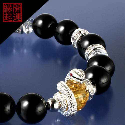 > ★巳年★パワーストーン★開運・蓄財の神様★家の守護神★商売の神様★金運・財運★ブレスレット★吉兆蛇スネーク&オニキス&白水晶&黄水晶