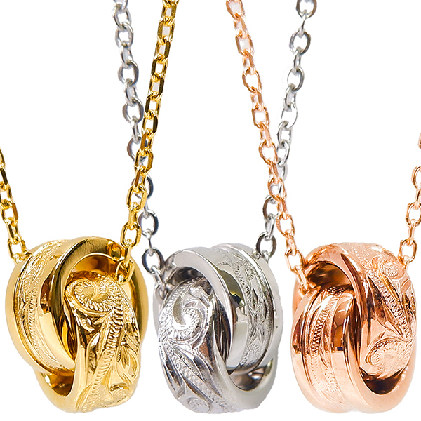 > ★インスタ映え★SNS★ハワイアンジュエリー★金属アレルギー&温泉&海水浴ご使用OK★ステンレスペンダント★ダブルリング&波スクロール