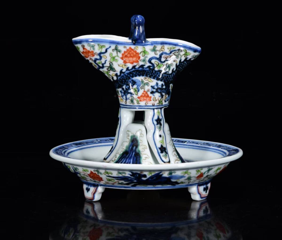 - 『館蔵珍品 明 宣德年製款 古陶瓷品 五彩 龍紋 杯』置物 賞物 貴重物品 収蔵品 中国古美術
