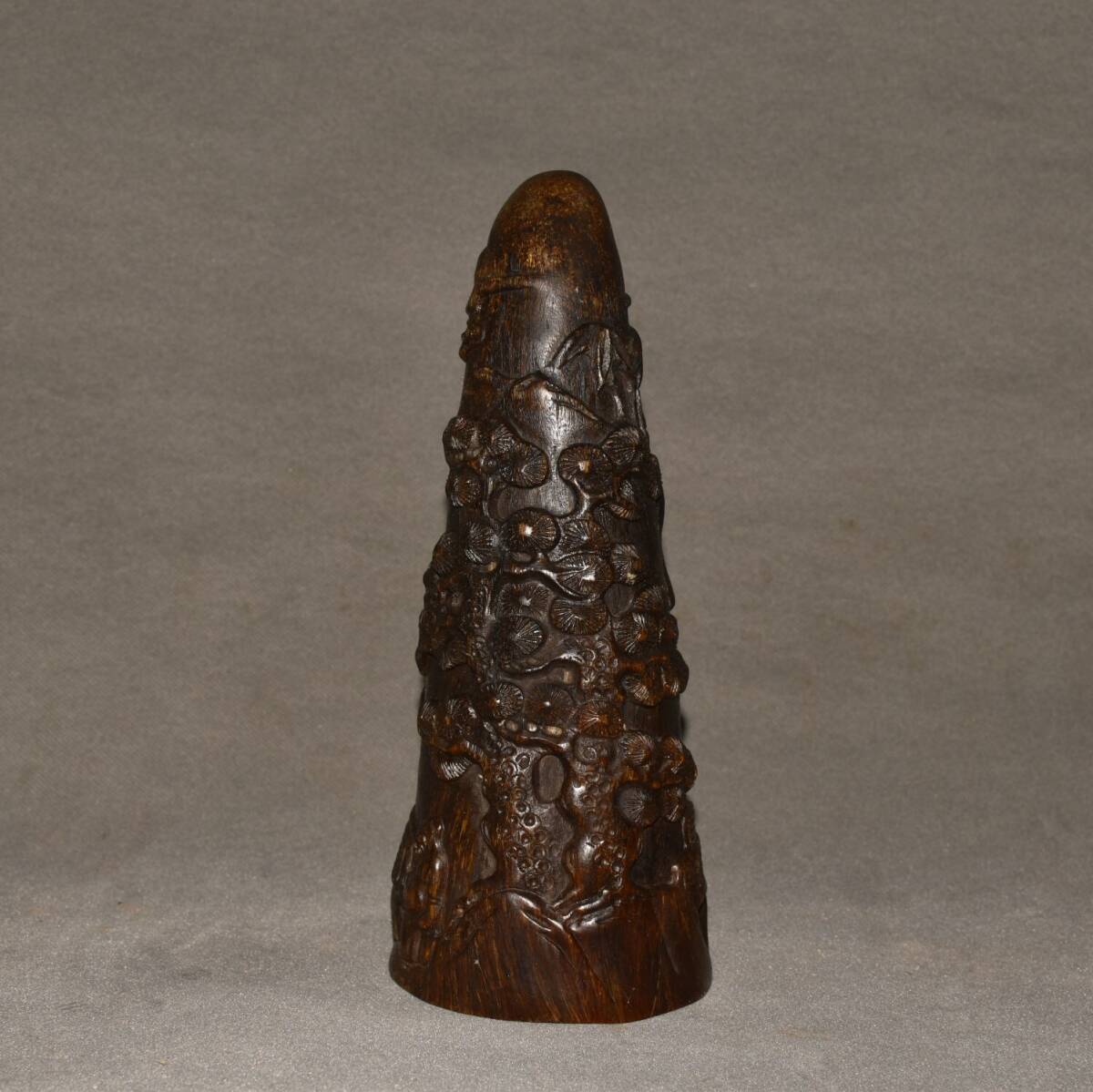 - 『館蔵珍品 角材細密彫 松樹人物酒尖』置物 賞物 貴重物品 収蔵品 中国古美術