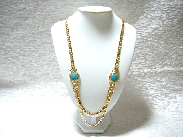 - ★ロング 喜平 ネックレス ゴールドカラー 青緑系【CK8】