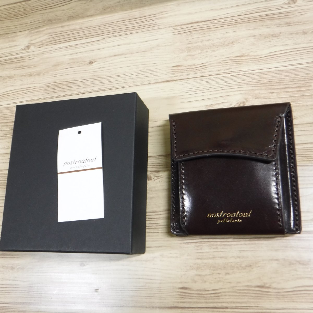 - QQ8 ノストロアテュー nostroatout 定価13200円 新品 コードバン仕上げ 二つ折り財布 イタリア牛革レザー 濃茶 ミニ財布 コンパクト財布
