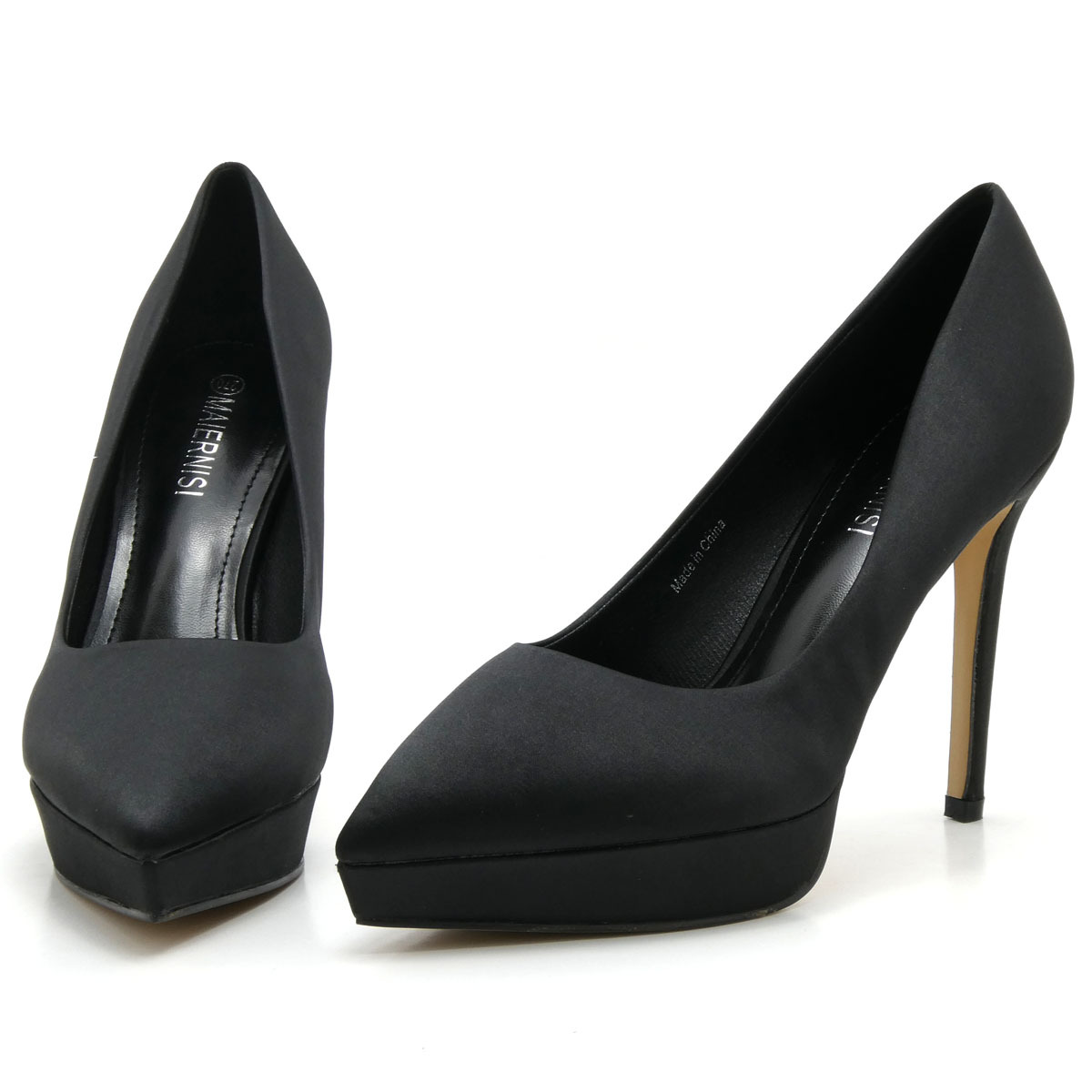 - 新品 大きいサイズ パンプス ブラック 26cm 131409-42 サテン素材 前厚底ストーム ハイヒール