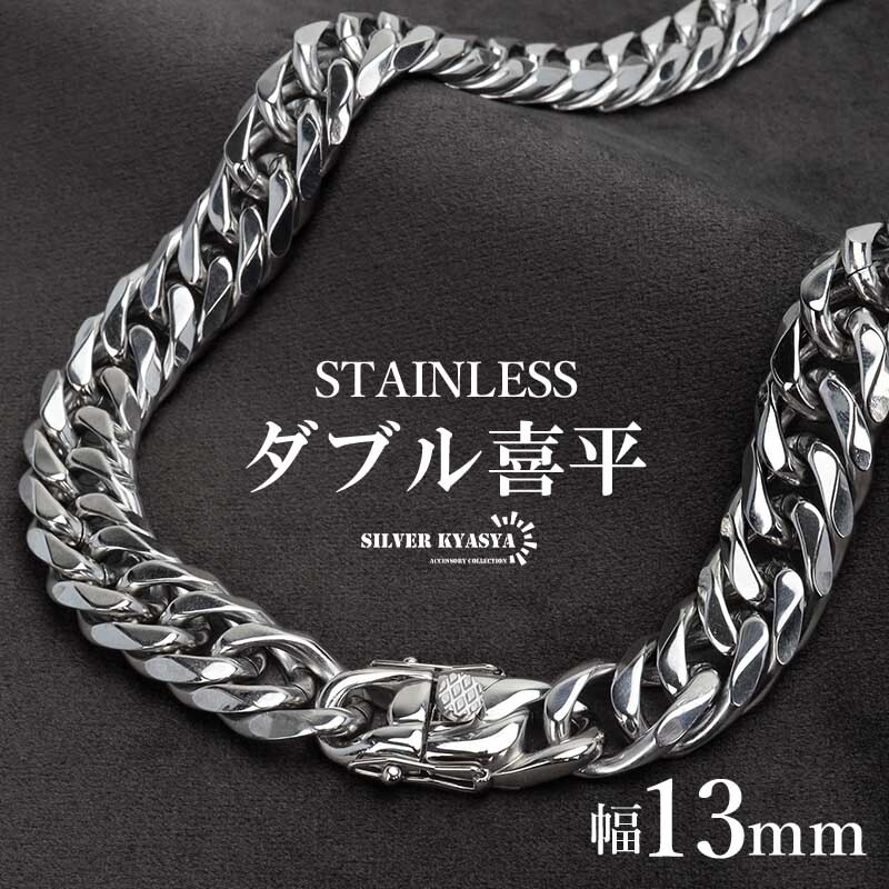 - (60cm) ステンレス製 ダブル喜平ネックレス シルバー 幅13mm マイアミチェーン 太幅 太め 金アレ対応