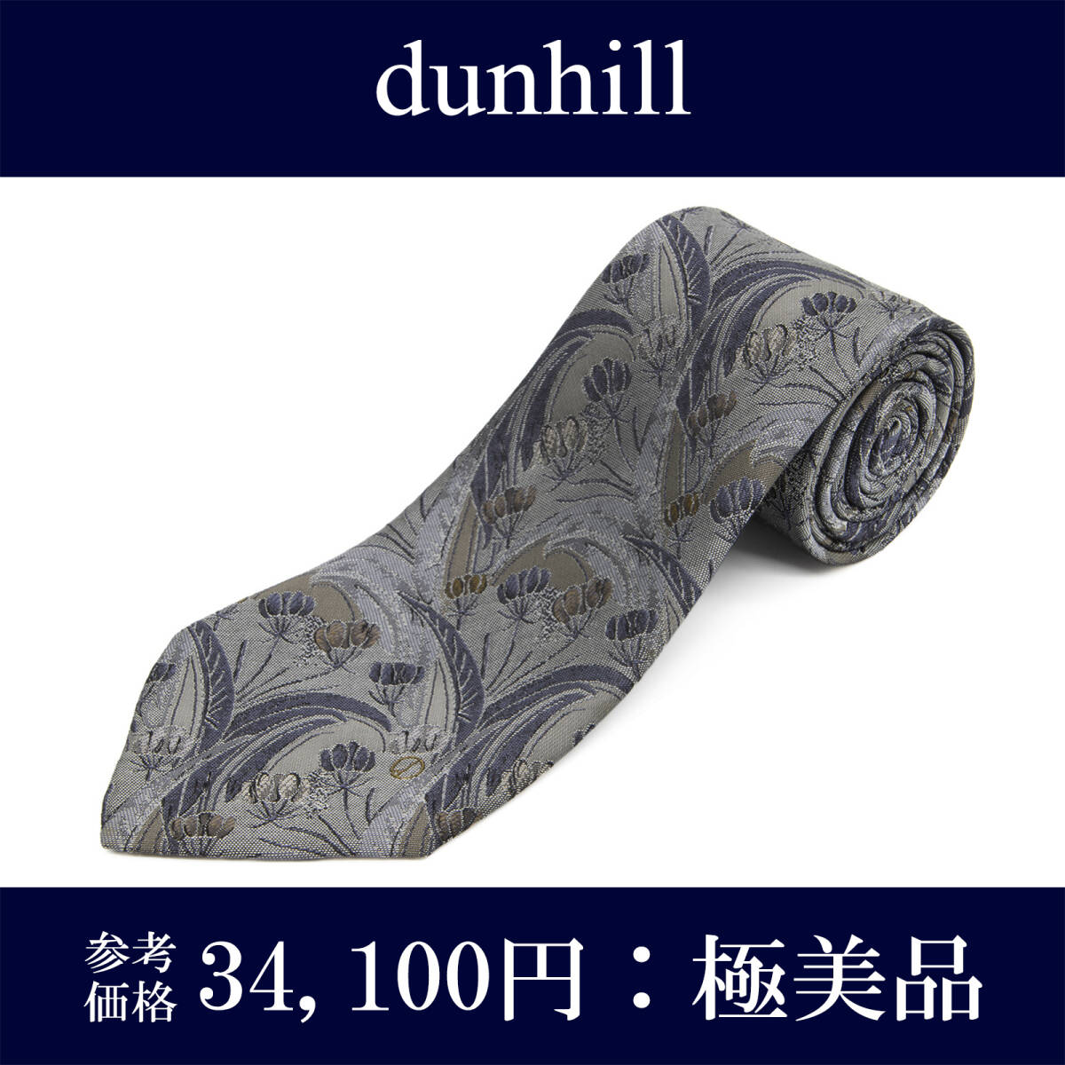 - 送料無料 ダンヒル ネクタイ レギュラータイ ジャガードタイ シルク グレー 青 茶色 花 草 フラワー ロゴ マーク ブランド イタリア製 N522
