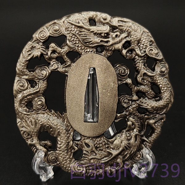 > SY159 日本刀装具 刀鍔 雲龍図 合金製 現代品 つば ツバ 刀剣美術 重さ約132G 厚さ約5mm