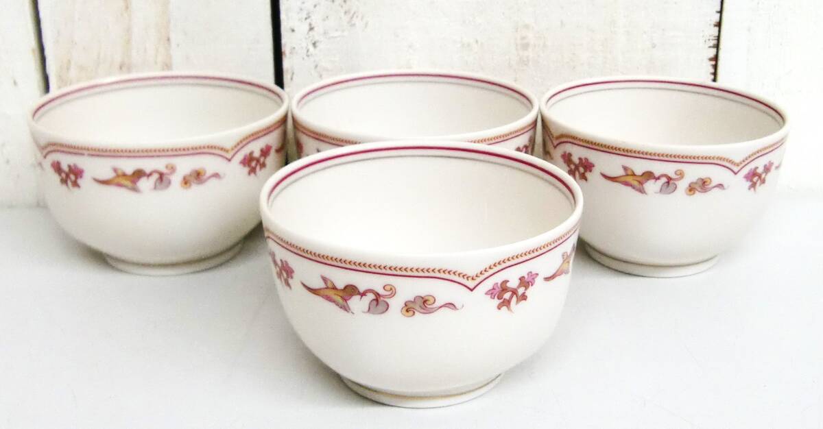 - アンティーク レトロ *NORITAKE BONE CHINA JAPAN ノリタケ *湯呑 4点セット まとめ *蔦柄 鳥 *茶器 食器 茶碗