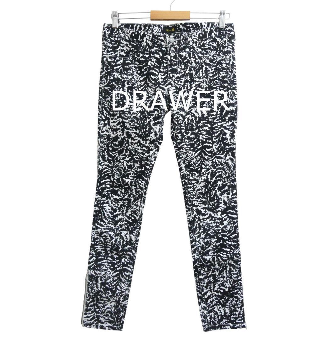 > 極美品 DRAWER ドゥロワー サイズ40 総柄 ストレッチ 裾ジップ テーパード スキニーパンツ ブラック×ホワイト