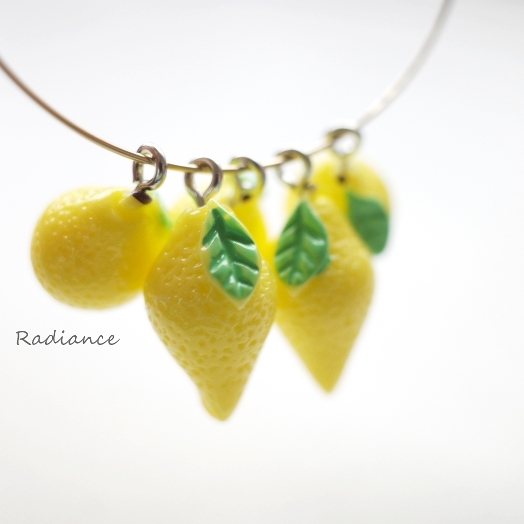 - ☆立体レモンチャーム☆ハンドメイド素材☆4個セット☆黄色☆