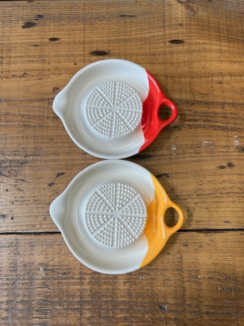 - Su.42★ダイソー 未使用 磁器製おろし器2枚セット★そそぎ口付き/薬味/DAISO/丸形/業務用/中古品