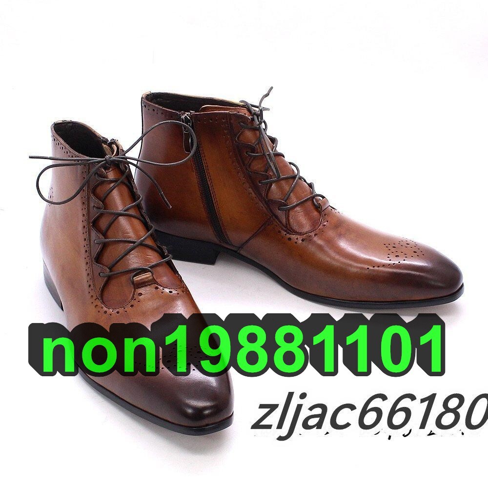 - ショートブーツ ビジネスブーツ メンズ 本革 レザーシューズ 職人手作り 彫り ワークブーツ 革靴 紳士靴 牛革 ブラウン 25cmサイズ選択可能