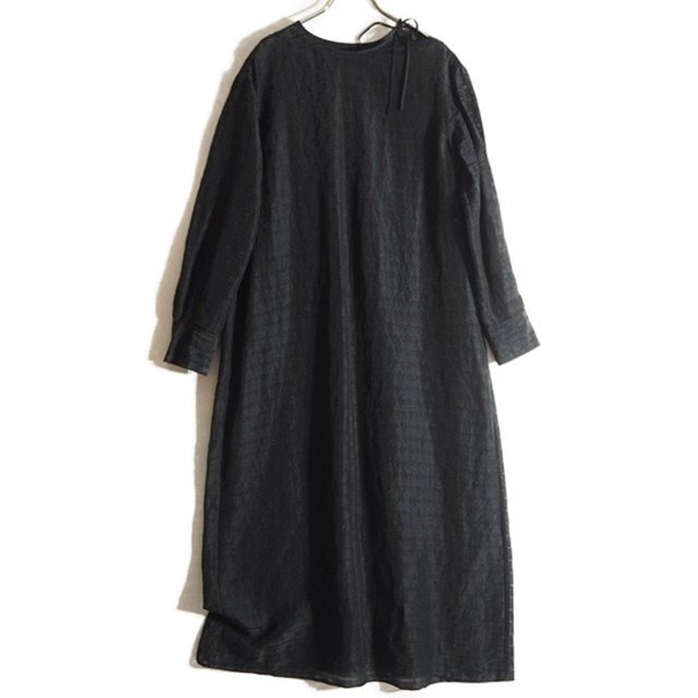 - P3478f38 ▼BACCA バッカ▼ 21SS リネンキュプラ フワラージャカード クルーネック マキシ ワンピース ブラック 36 トゥモローランド 春夏