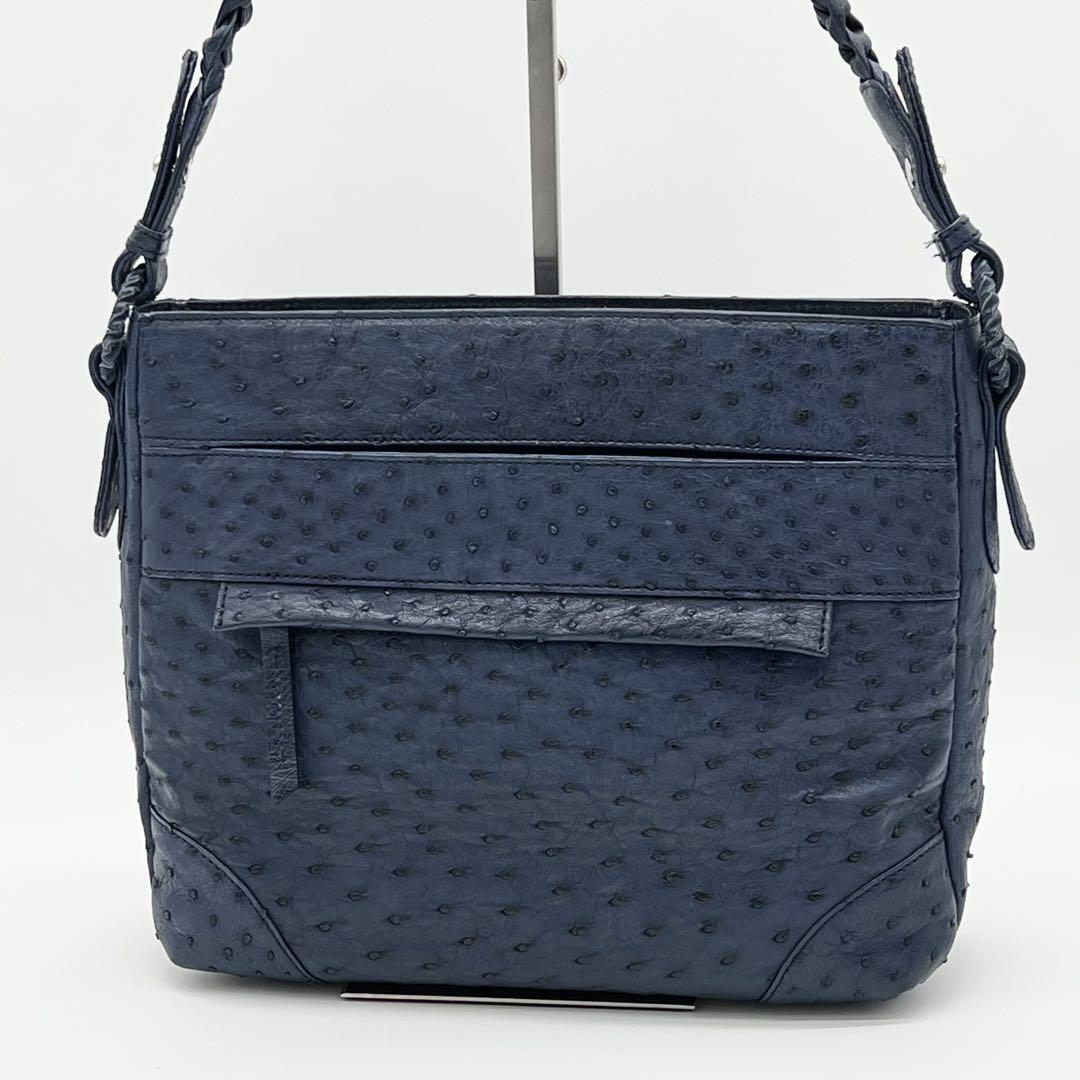 - 【極美品】Takechi Ostrich オーストリッチ ダチョウ Exotic ハンドバッグ ショルダーバッグ フォーマル レディース ネイビー JJ000325A