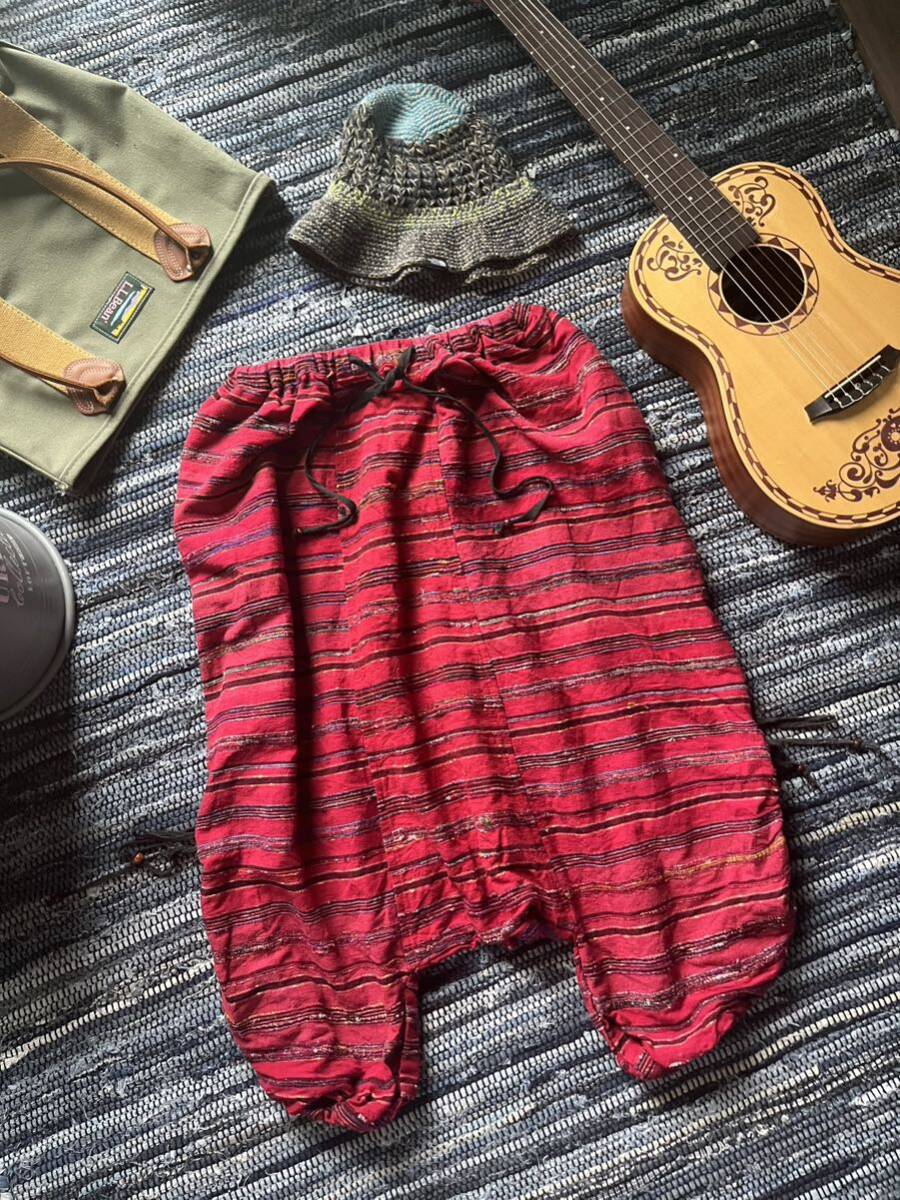 - 美品 エルロデオ EL RODEO Collction サルエルパンツ 変形ズボン 編み込ピケ生地 sizeフリー 胴囲95cm対応 検索Amina チャイハネ yul
