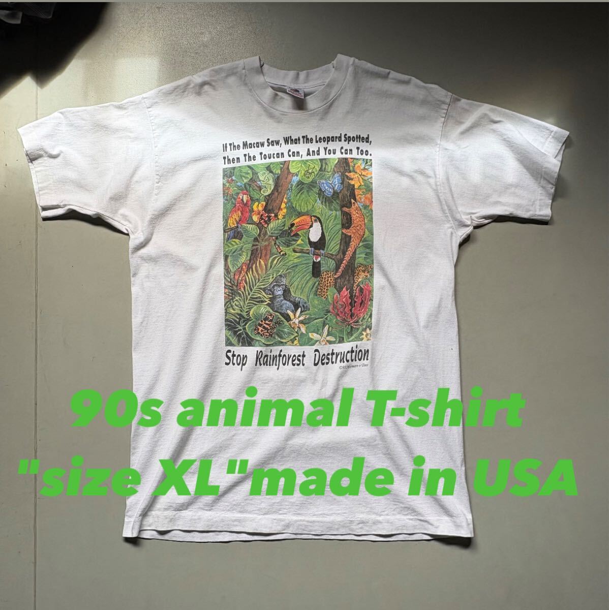 - 90s animal T-shirt size XLmade in USA 90年代 アニマルTシャツ 半袖 Tee USA製 アメリカ製 白