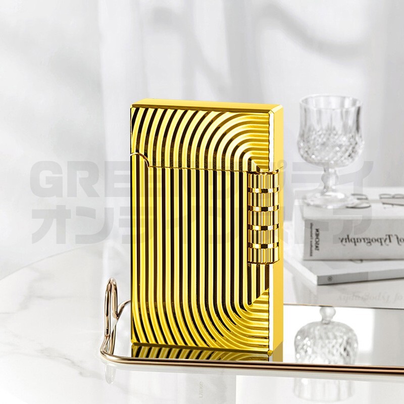 - フリント サイドローラー 両面 ウェーブライン ガスライター ゴールド 快音
