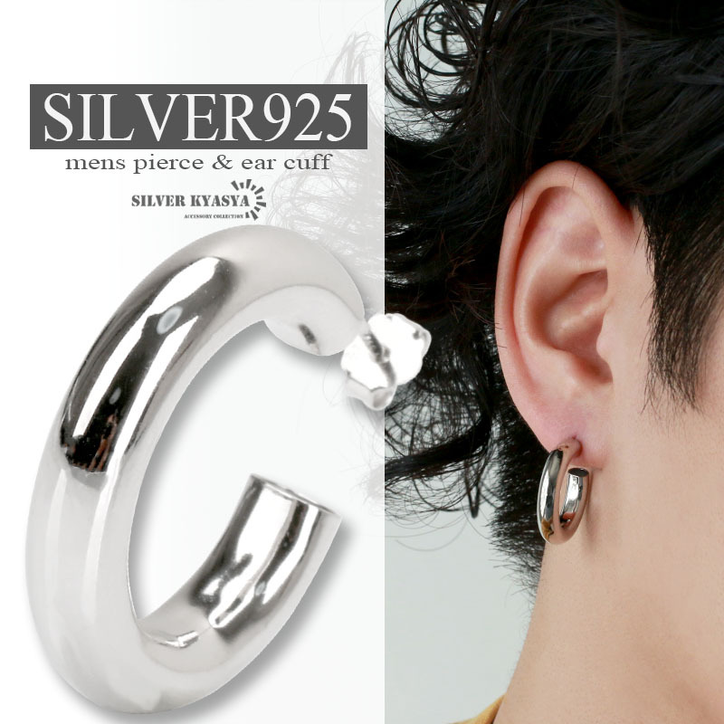 - ラージサイズピアス シルバー925 大きめ 太め フープピアス アレルギー対応 片耳用 20G