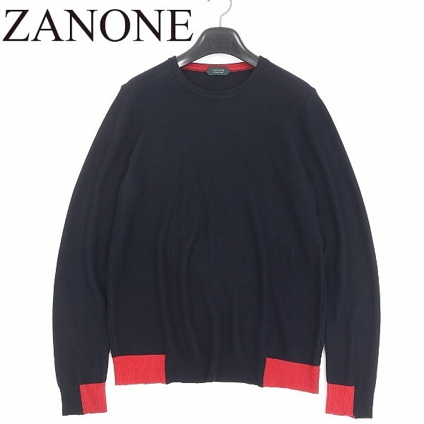 - ◆ZANONE ザノーネ コットン ニット セーター ダークネイビー×レッド 48
