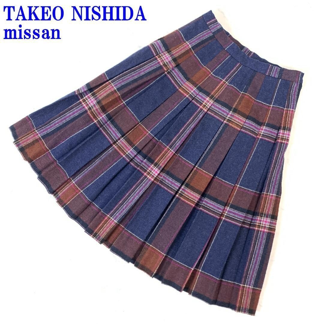> TAKEO NISHIDA missan スカート 紺 ウール タケオニシダ プリーツスカート チェック ネイビー 赤 11 C2294