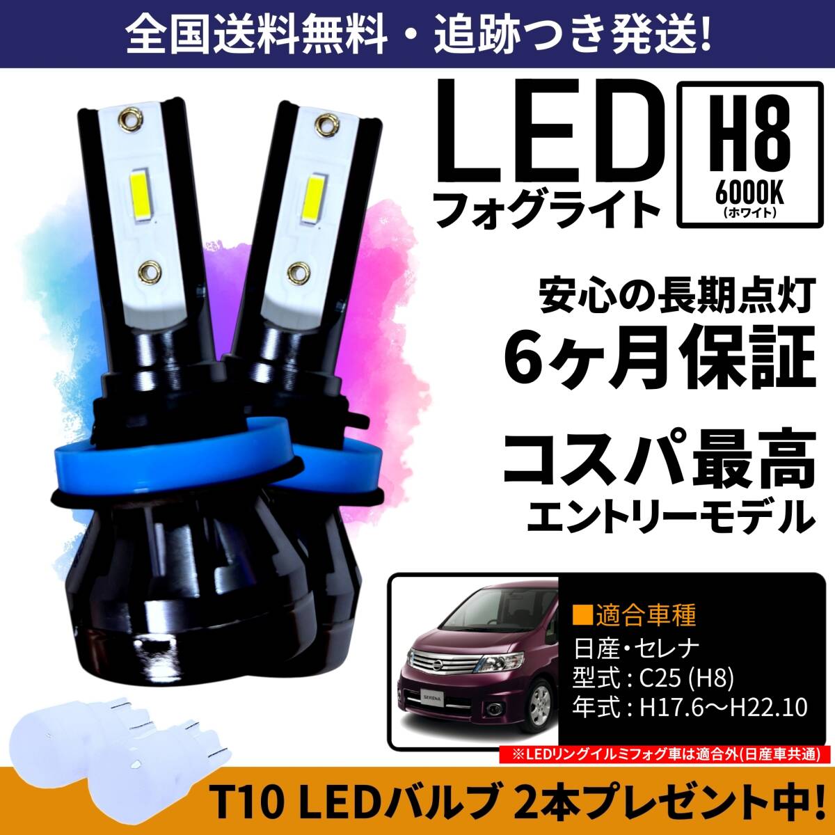- 【送料無料】日産 セレナ C25 LED フォグライト フォグランプ H8 ホワイト 6000K 保証付き