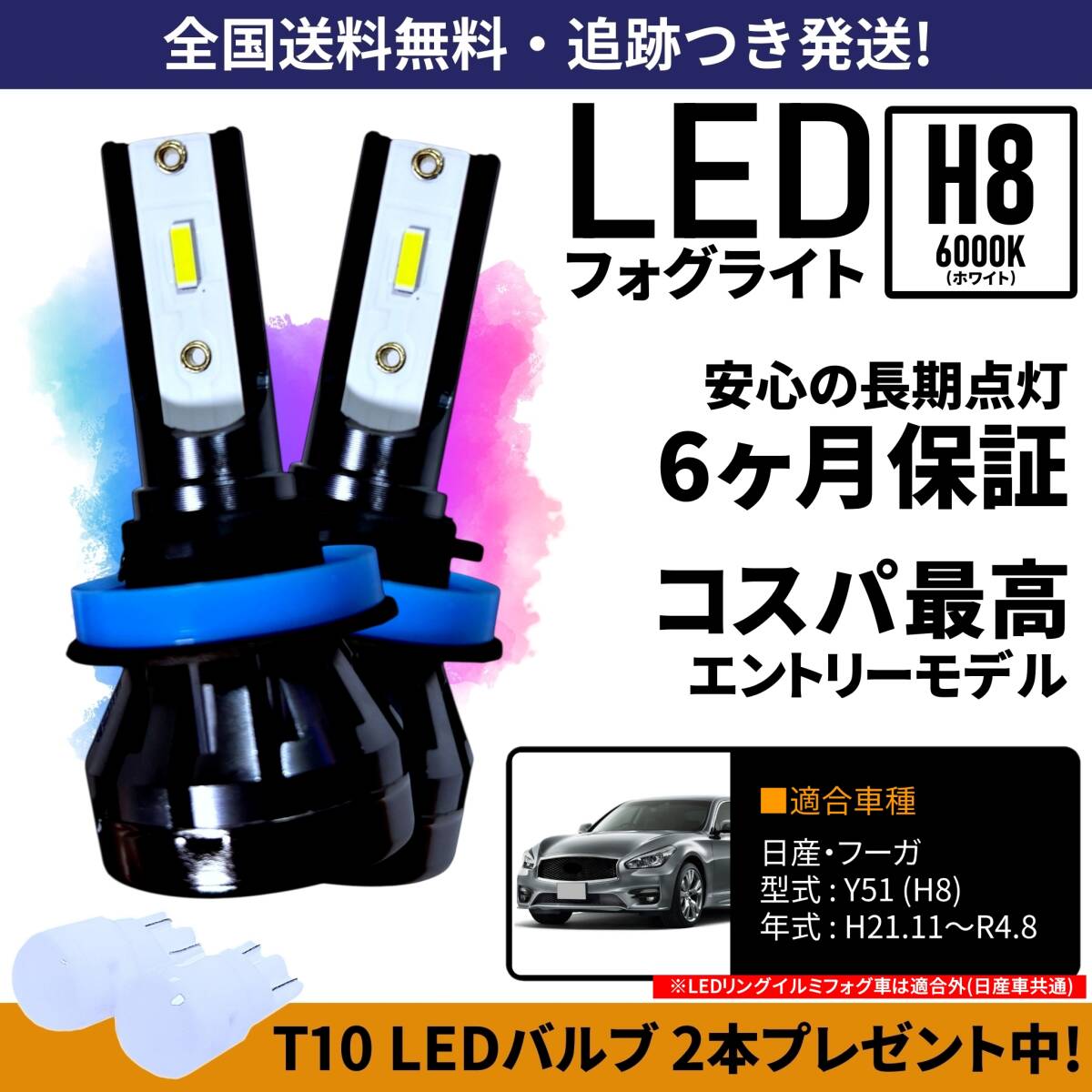 - 【送料無料】日産 フーガ Y51 LED フォグライト フォグランプ H8 ホワイト 6000K 保証付き