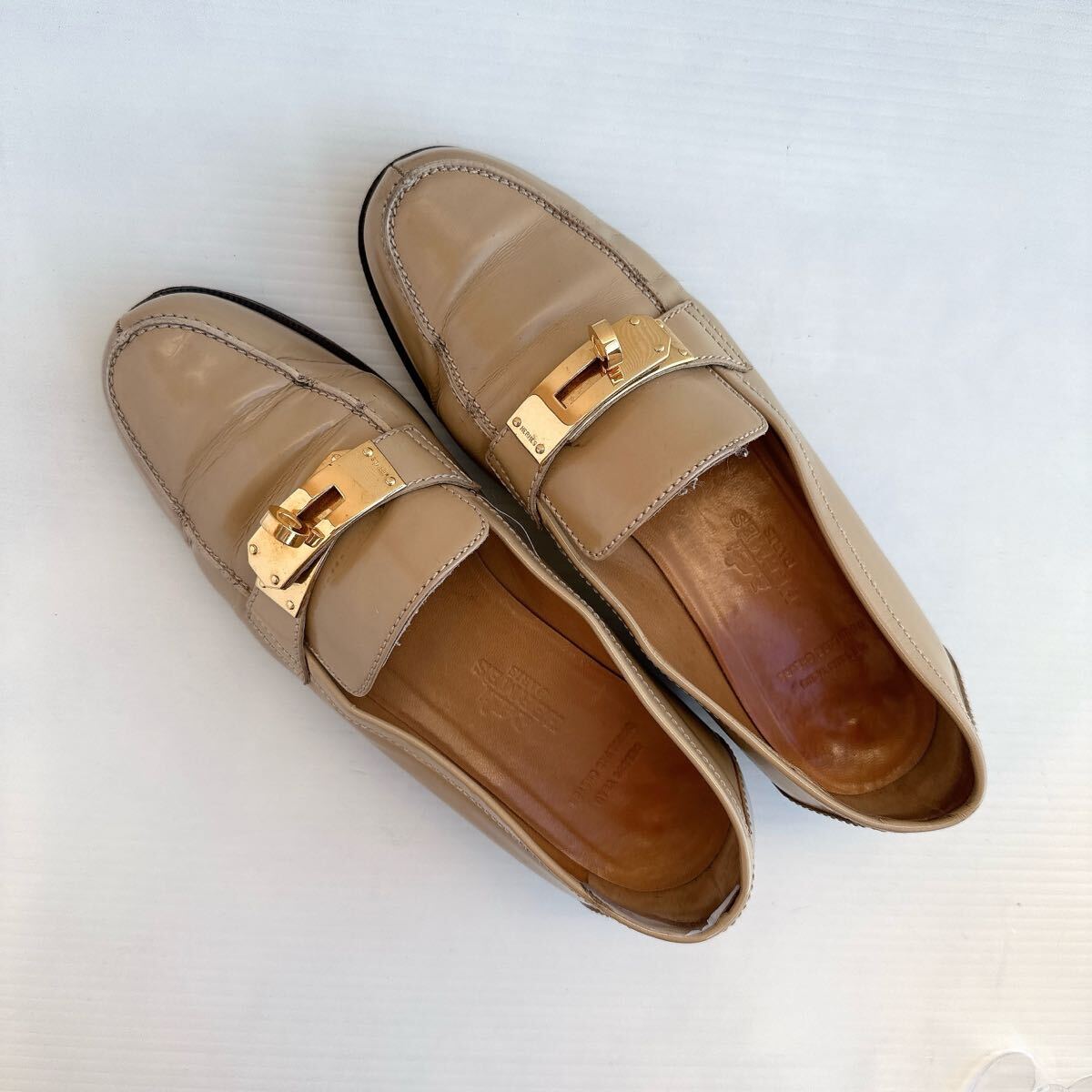 - HERMES エルメス デスタン モカシン ケリーバックル ローファー 靴 シューズ レーディス 34.5 ベージュ 革靴
