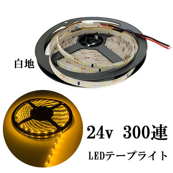 - LEDテープライト 24V 5M 300連 防水 正面発光 白地 イエロー 発光 送料無料