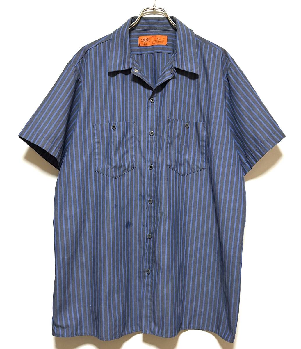 > Dickies SHORT SLEEVE WORK SHIRT(XL)青/グレー ディッキーズ ストライプ ワーク オープン シャツ 半袖