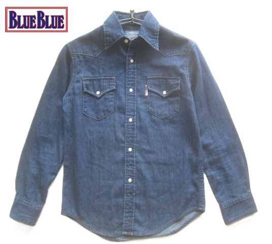> 美品日本製!!ブルーブルー BLUE BLUE*ロゴタグ付き インディゴデニムウエスタンシャツ 1 レディースS ハリラン ハリウッドランチマーケット