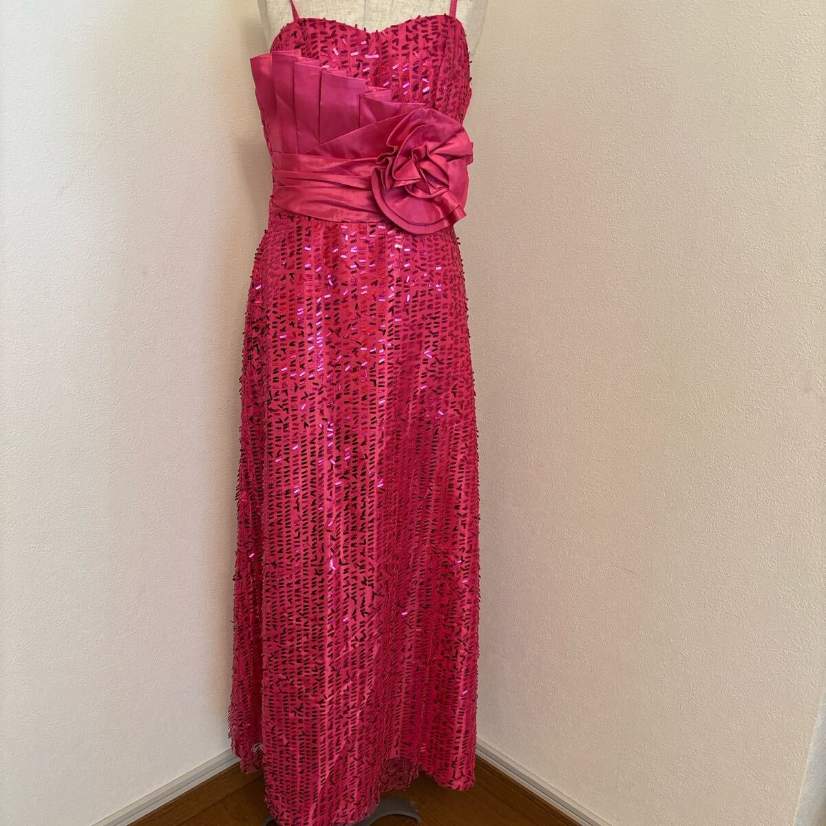 - ☆ 大人可愛いローズピンクロングドレス 花&スパンコール M相当