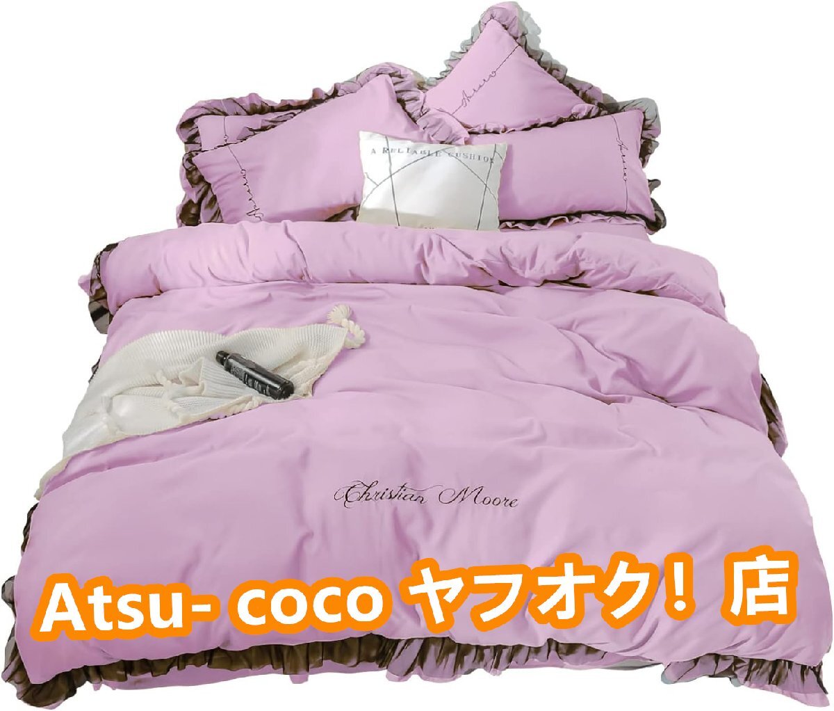 > 布団カバー刺繍 蓮の葉 和式 寝具カバーセット掛け布団カバー敷布団カバー枕カバー布団用洗い(パープル , シングル・3点セット・敷布団用)