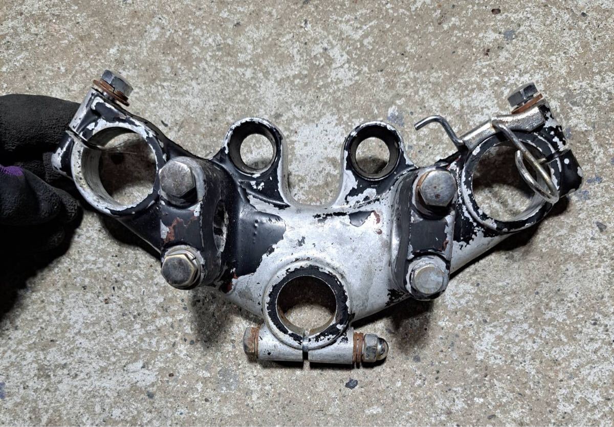 - 3 カワサキ KZ900 KZ1000 トップブリッジ ステー付 当時物 ハンドルポスト ハンドルクランプ フロントフォーク 外装 ステム Z1 Z2 Z750RS
