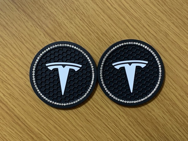 - テスラ キラキラ ラインストーン付き 黒シリコン 断熱 2個セット ドリンクホルダーコースター