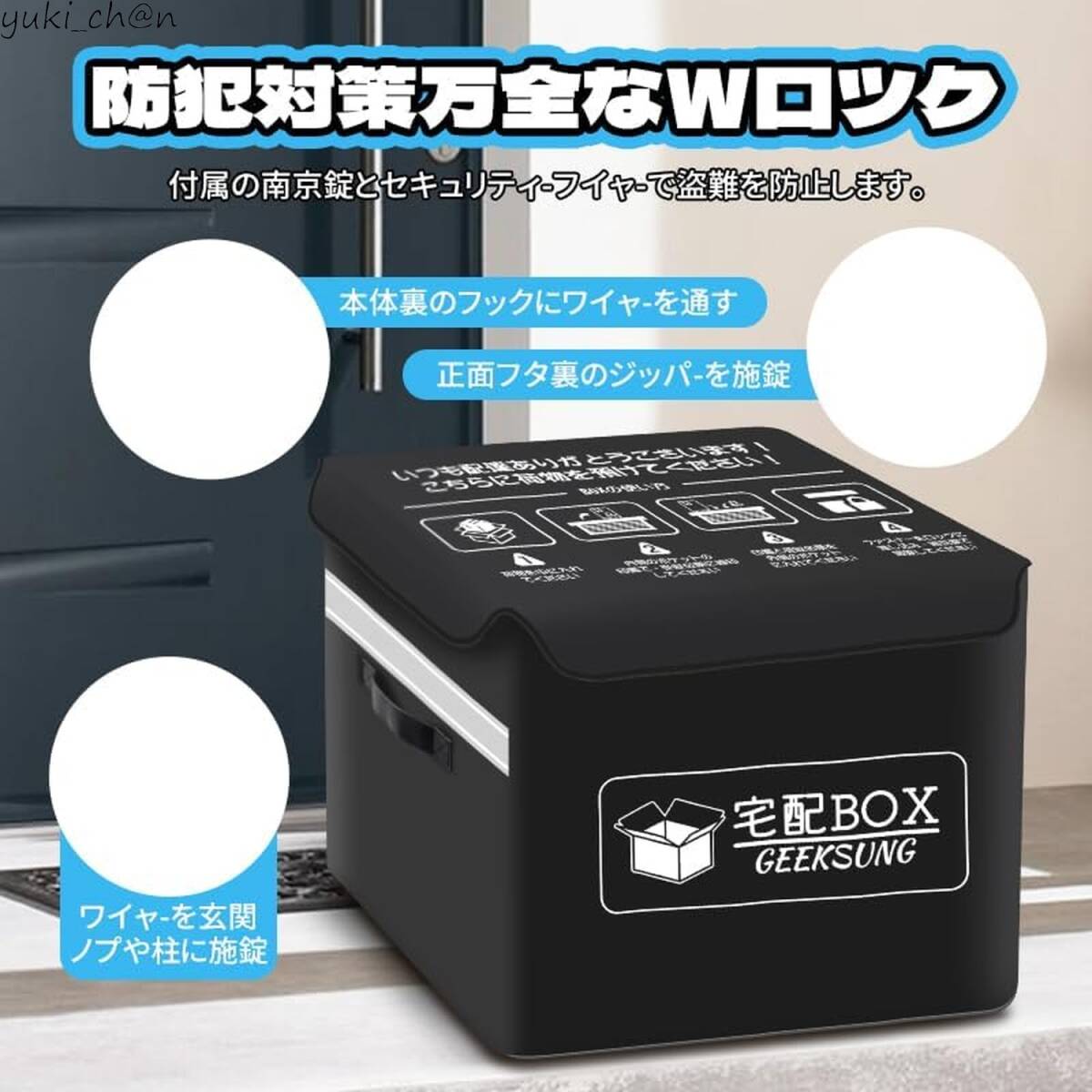 - 宅配BOX ブラック 88L 大容量 置き配ボックス 防水 玄関 戸建 マンション 盗難防止 ワイヤー 南京錠 Wロック 頑丈