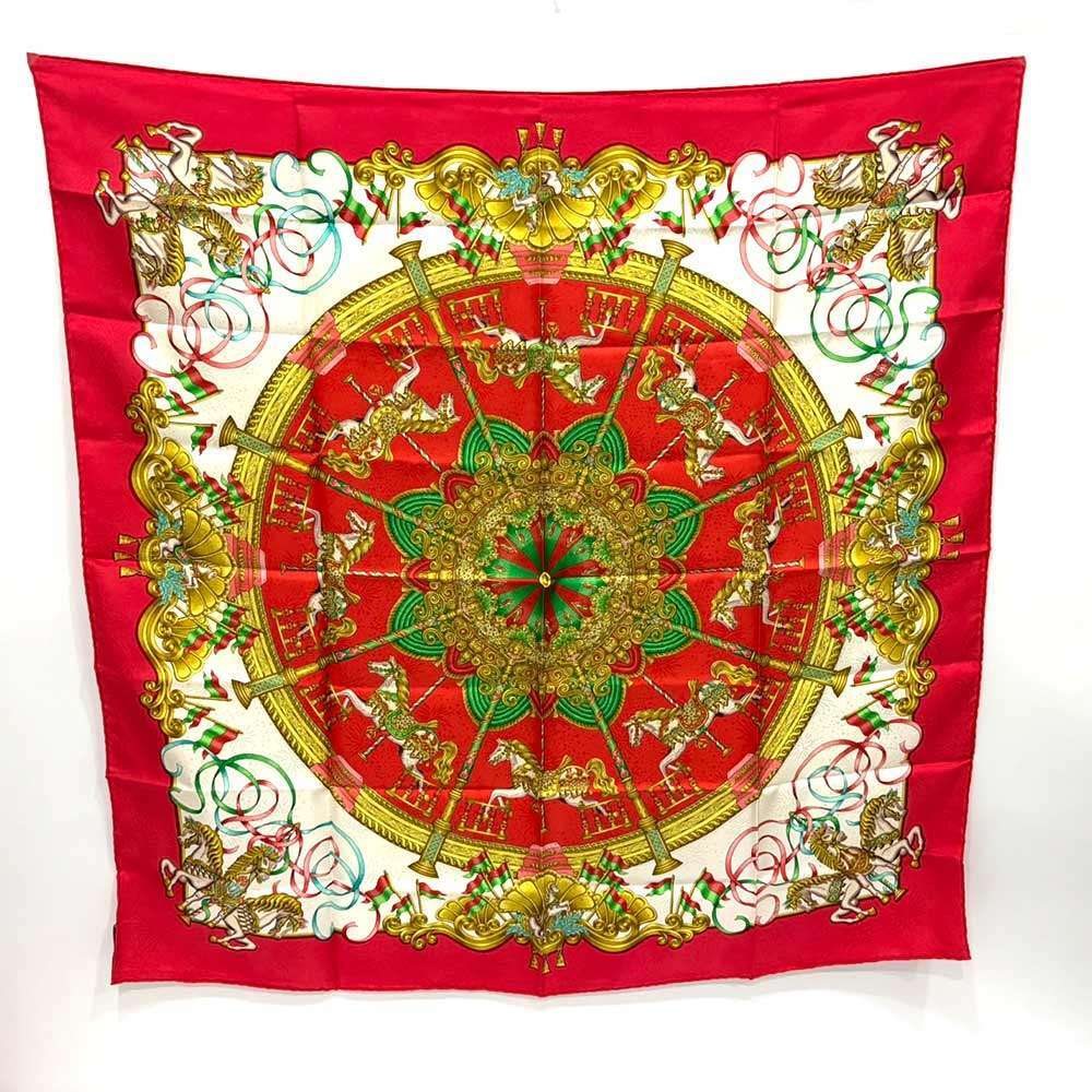 > 中古 エルメス カレ90 ABランク 馬 遊園地 レッド マルチカラー レディース HERMES【送料無料】【西神店】」
