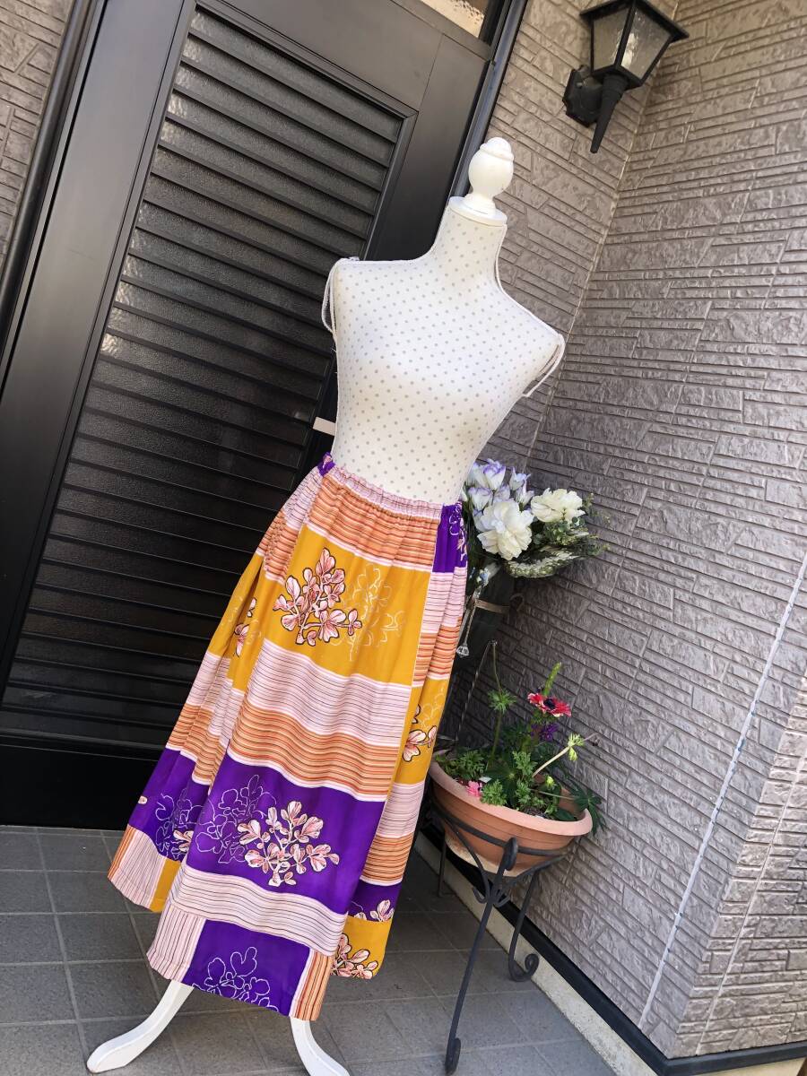 - ハンドメイド 着物リメイク・和服リメイク 浴衣リメイク 夜具地 フレアスカート・ロングスカート 綿100% 昭和レトロ 送料230円