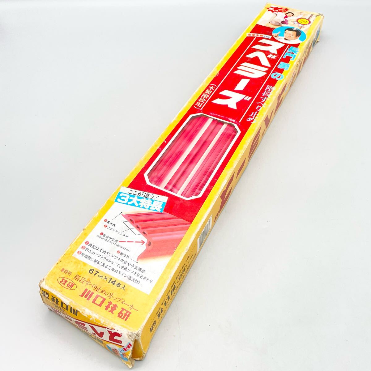 - [未使用] 川口技研 木製 階段用 すべり止め スベラーズ 赤 レッド 67cm 14本 建築 内装 建材 転倒 事故 防止 レトロ 金物屋 在庫品 まとめ