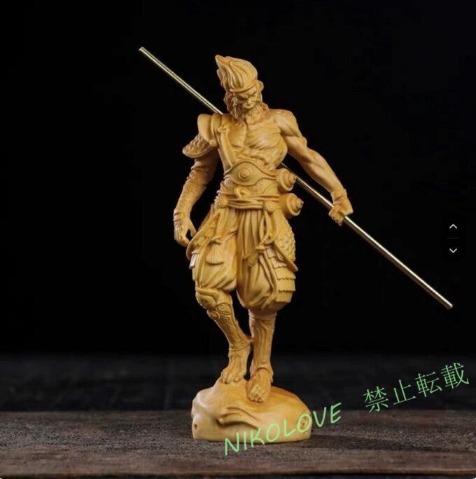 - 新品 置物 フィギュア 孫悟空 如意棒を持つ立ち姿 西遊記 り 天然木
