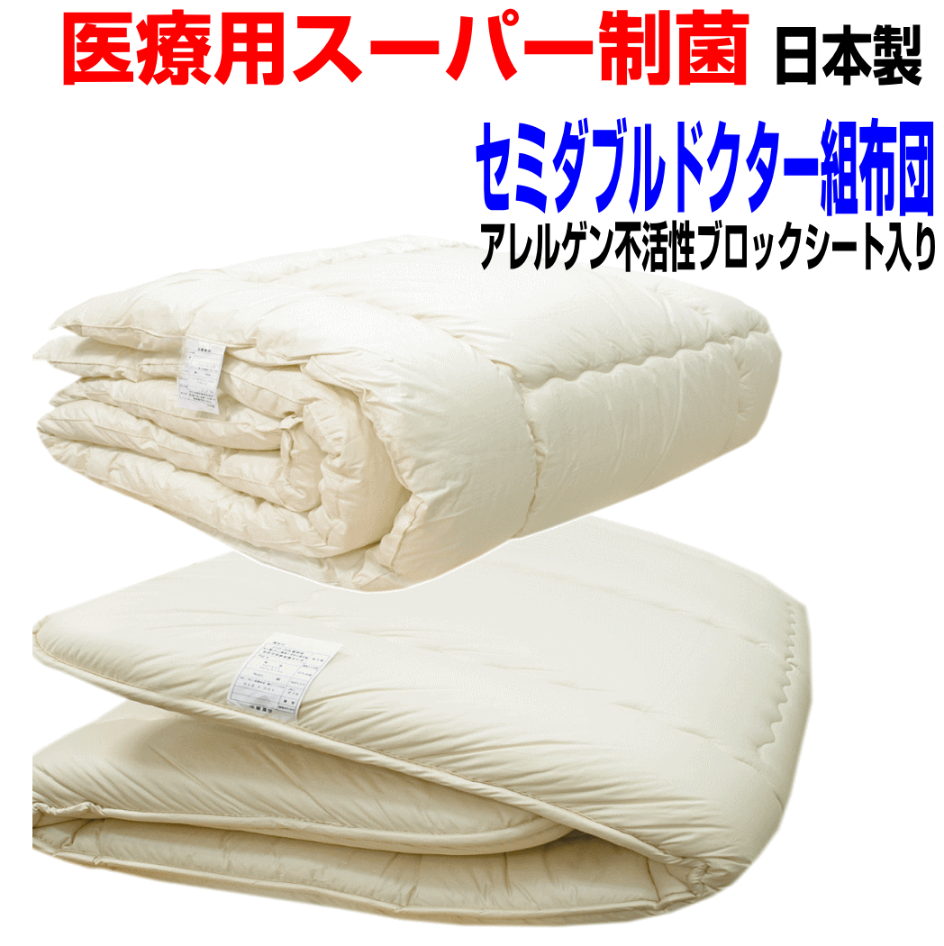> 布団セット セミダブル 日本製 強力医療用 掛布団 敷布団 ふとん 抗菌 防ダニ 腰痛 アレルギー SD3層組布団赤