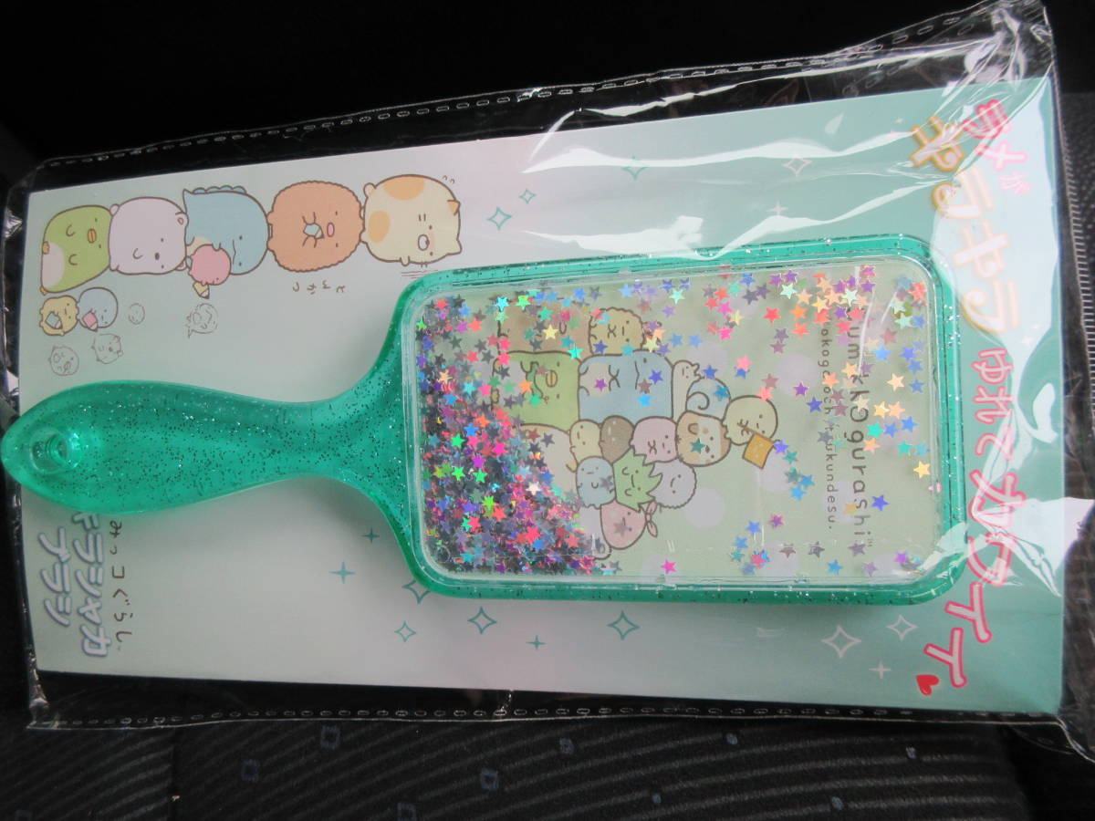 - ☆すみっコぐらし キラシャカブラシ グリーン みどり 緑 ヘアーブラシ くし 櫛 ラメ キラキラ ゆらゆら とかげ ねこ レア 希少★新品未開封