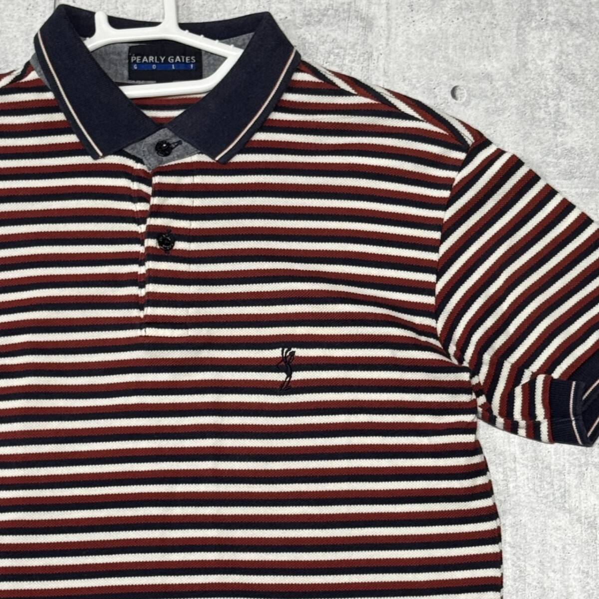 - PEARLY GATES GOLF 鹿の子 ポロシャツ パールーゲイツ ゴルフ ボーダー ロゴボタン レディース ゴルフウェア 刺ロゴ 早5002