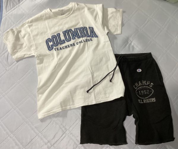 - チャンピオン champion コロンビア大学 カレッジTシャツと旧タグリバースウィーブ薄手ハーフパンツ 2点セット///ビンテージレトロアメカジ