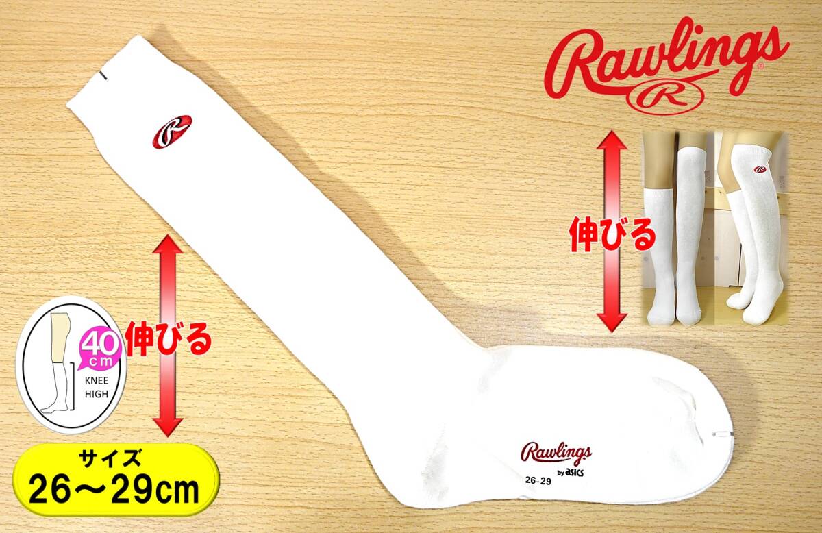 - 【未使用品★レッグウェア】Rawlings◆白 ハイソックス◆アンダーソックス◆厚手◆BIGサイズ◆26-29cm◆よく伸びる◆