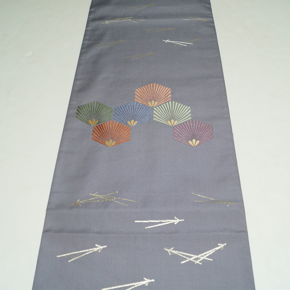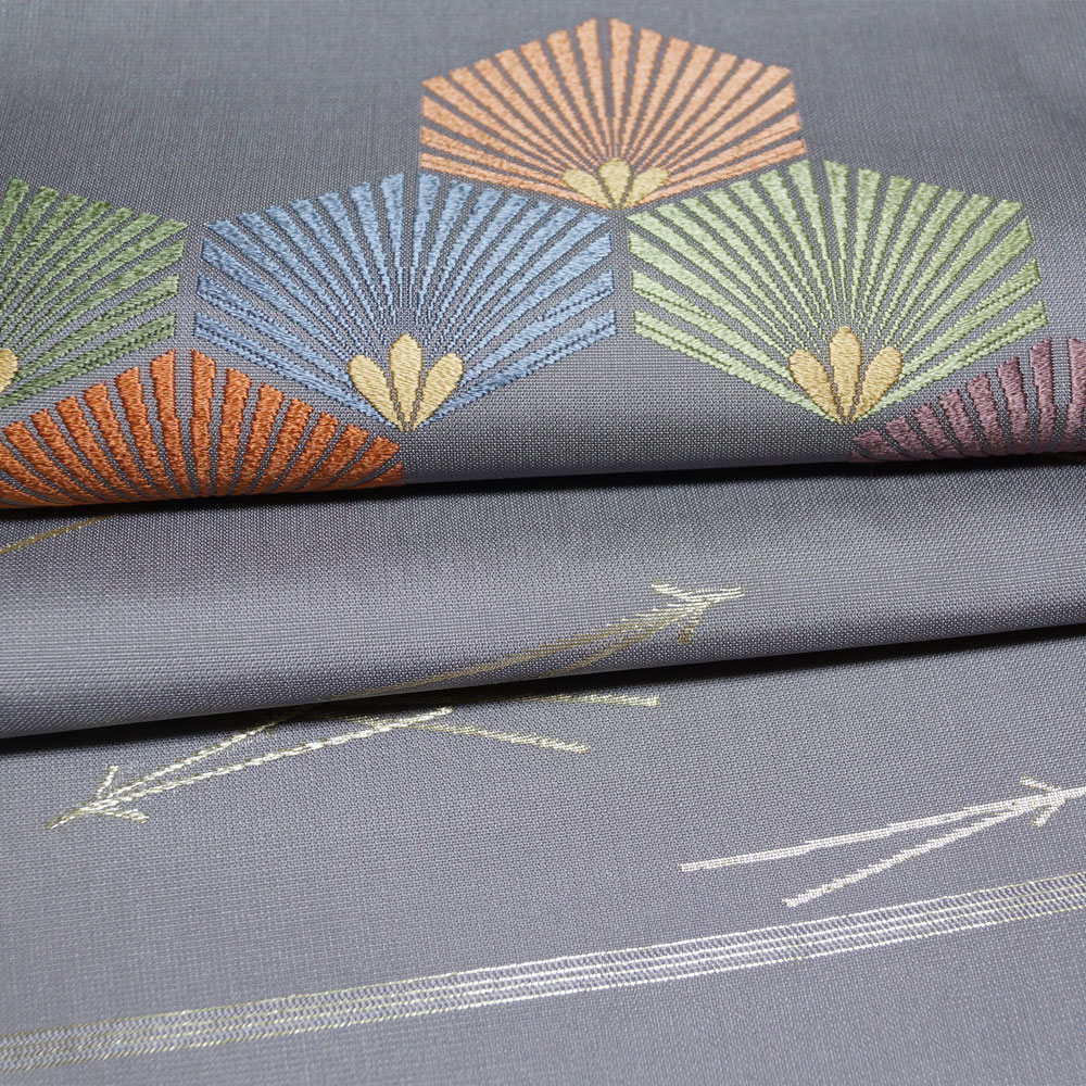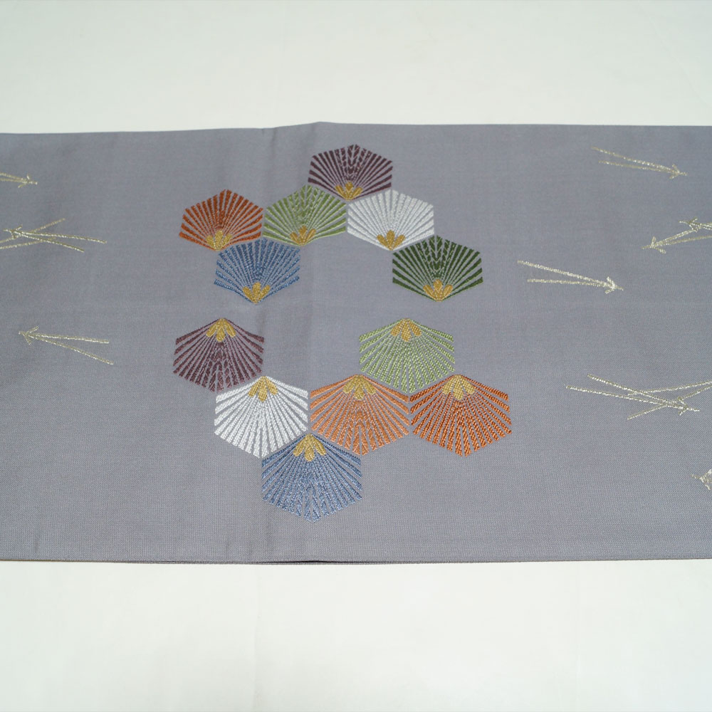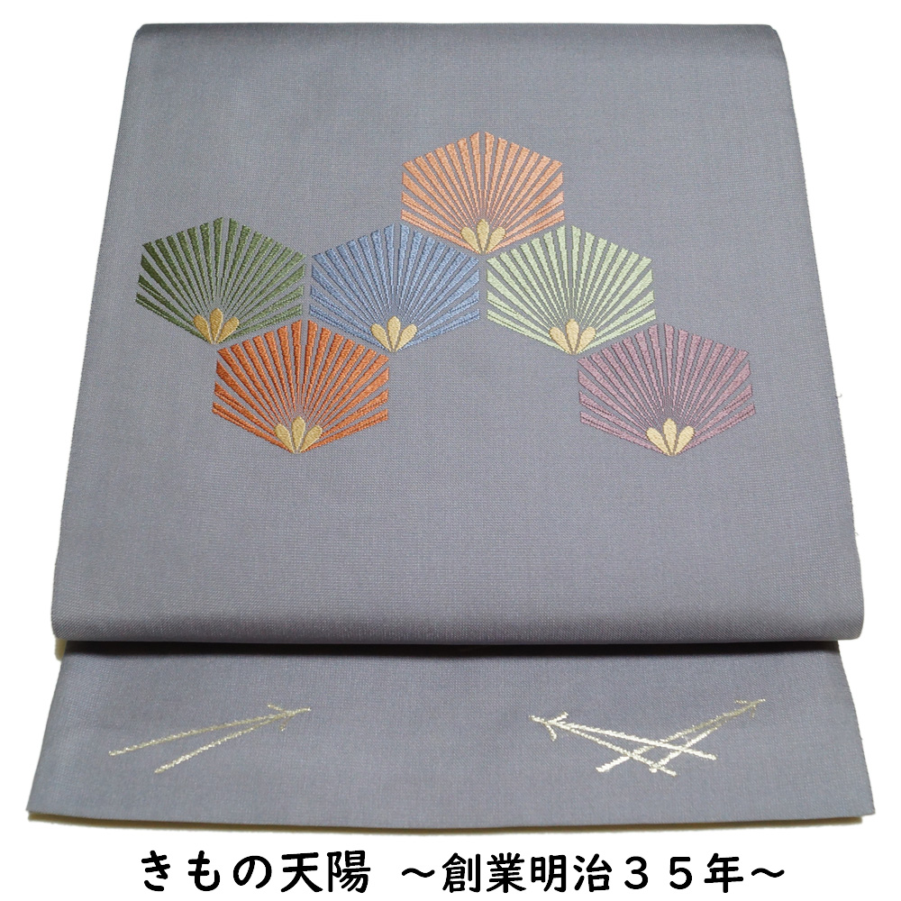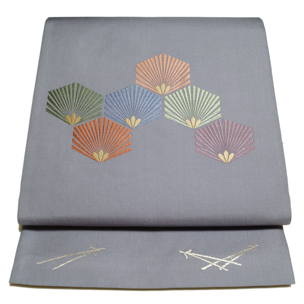 - 袋帯 亀甲若松、松葉模様 お太鼓柄 金糸 藤鼠色系 リサイクル 正絹 中古 リサイクル着物 帯 フォーマル 袋帯 着物 きもの天陽