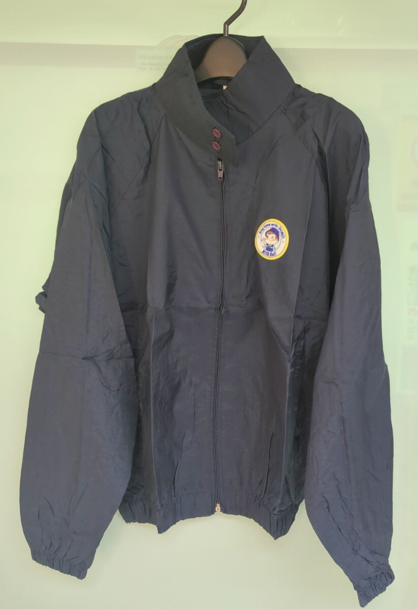 - 不二家 ペコちゃん ポコちゃん 非売品 ナイロンジャケット ブルゾン M スタッフ ジャンパー アウター 新品 未使用 ネイビー