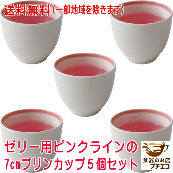> 送料無料 ゼリー用 7cm ピンクライン プリンカップ 5個 セット 電子レンジ可 食洗器対応 美濃焼 日本製 皿 デザート皿 シンプル 洋食器 小